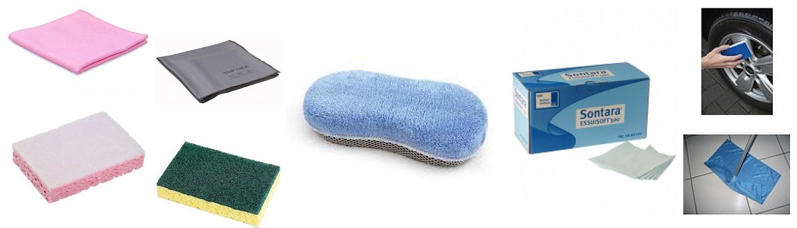 Chiffons en coton, lavettes micro-fibre, bobines en « intissé », éponges, tous les supports en terme de matière et de format pour répondre aux besoins de chacun : entretien, récurage de la maison, des vitres, des voitures.